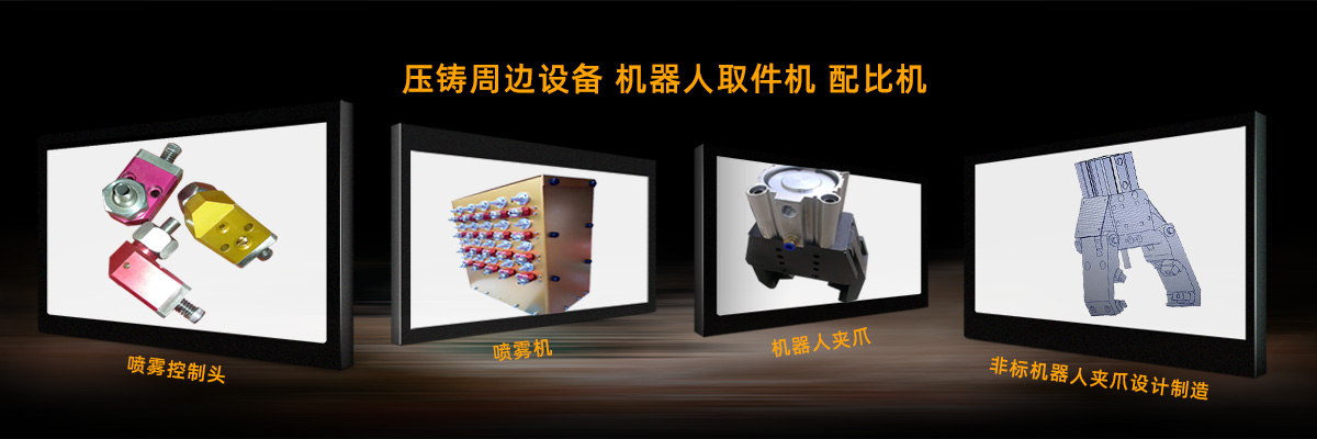 3.壓鑄周邊設(shè)備:脫模劑的噴霧機(jī)、噴霧控制頭、機(jī)器人夾爪、取件機(jī)、壓鑄機(jī)移門等!